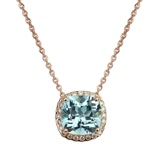 Collier Isabelle Langlois or rose, Topaze Bleue 1,62 carats entourage diamants pour 0.09 carat